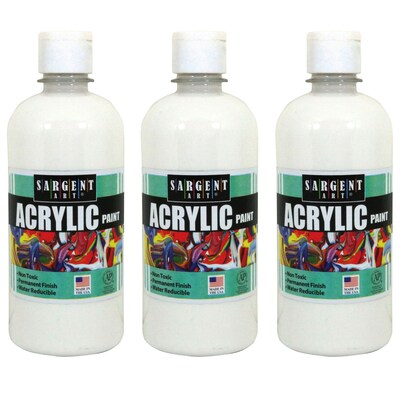 Sargent Art Acrylic Paint, 16 oz., White, Pack of 3 (SAR242496-3)