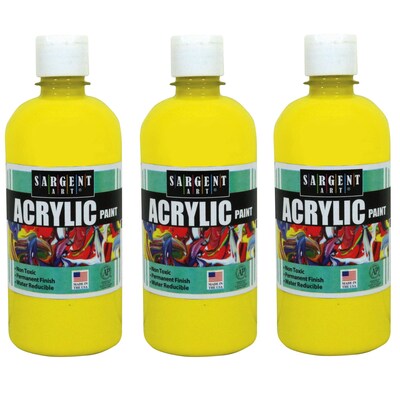 Sargent Art Acrylic Paint, 16 oz., Yellow, Pack of 3 (SAR242402-3)
