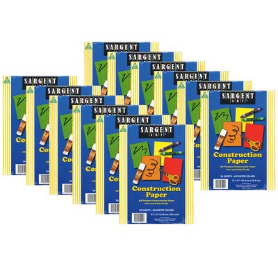 Sargent Art® Construction Paper Pack, 9" x 12", Assorted Colors, 50 Sheets Per Pack, 12 Packs (SAR234001-12)