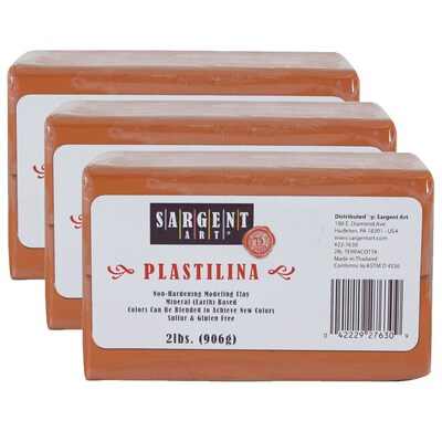 Sargent Art Plastilina Non-Hardening Modeling Clay, Terra Cotta, Grade PK-12, 2 lbs. Per Pack, 3 Packs (SAR227630-3)