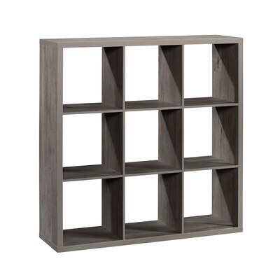 The Sauder Select 9-cube organizer makes a great storage bookcase or décor display. Its versatile design creates multiple storage solutions for any room. Is organization an issue in your home? Look no further! Create the storage and organization that your home needs without having to sacrifice on the style that you love with this 9 cube organizer from the Sauder Select collection. This storage bookcase features nine spacious cubbyholes that are perfect for storing your collection of books, stacks of magazines, and spare blankets. These cubbies also make a great place to display home décor like decorative plants and framed photos of the family. Each cubby shelf can also hold 13-inch storage bins (sold separately) for additional hide-away options that allows you to contain and conceal clutter. The spacious top surface of this 9-cube storage offers additional display for items like a table lamp and framed art. Cube organizers, like this one, have a place for all your things! Finished on all sides, this cube storage bookcase will look great in any room of your home. Finished in Mystic Oak, this cubby bookshelf will have your home looking tidy in no time!
