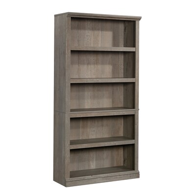 There is no such thing as too much storage space. Add the versatile storage options that your home needs while adding the beautiful style and design that you want with this transitional 5-shelf bookcase from the Sauder Select collection. This tall bookcase features five spacious shelves that provide you with all the room you need to store a variety of different items like your collection of novels, stacks of magazines, and organizing bins. These large shelves also make a great place to display home decor items like your array of knick-knacks, decorative plants and wireless speakers. This storage bookcase includes three adjustable shelves that have the ability to move to different heights to create flexible storage options for items of all shapes and sizes. Its simple charm and attractive good looks make it a perfect fit for any room in your home. Finished in Mystic Oak, this handsome 5-shelf bookshelf is everything your home needs and more.
