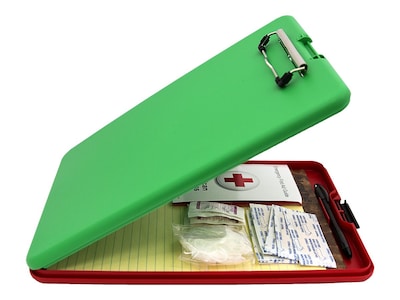 Keep disaster pans, emergency evacuation routes and other important information stored in this safety organizer. The bright green and red coloring doubles as signal to give people a warning or all-clear sign, and the low-profile clip keeps attendance rosters, employee lists and other critical documents in place as you coordinate evacuation and response services. This Saunders Show2Know snaps shut to prevent important paperwork from getting lost.