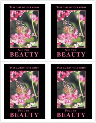 Attention-getting postcard captures your patients attention. The back of the postcard is blank so you can add a personalized message, using your own Laser Printer. Uncoated stock, perforated sheets. Four cards to an 8-1/2" x 11" sheet. 100 cards. Detached size: 4-1/4" x 5-1/2".