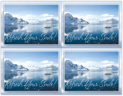Attention-getting postcard captures your patients attention. The back of the postcard is blank so you can add a personalized message, using your own Laser Printer. Uncoated stock, perforated sheets. Four cards to an 8-1/2" x 11" sheet. 100 cards. Detached size: 4-1/4" x 5-1/2".