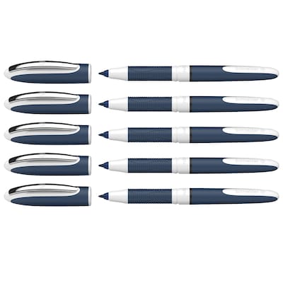 Rollerball can be refilled with the exchangeable One Change cartridge with Ultra-Smooth tip for the best writing experience. Line width approximately 0.6 mm, waterproof according to ink standard ISO 14145-2. The innovative Super-Flow-System guarantees consistent ink flow from start to finish. The cap-off ink does not run dry even if the cap is removed for 2-3 days and, besides this, is quick-drying and smudge proof. The One Change has a sturdy metal clip and a rubberized grip zone that provides a secure hold for relaxed writing. Sold as a pack of 5 pens.