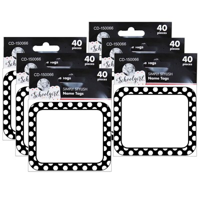 Schoolgirl Style™ Simply Stylish Black & White Dots Name Tags, 3" x 2.5", 40 Per Pack, 6 Packs (CD-150066-6)