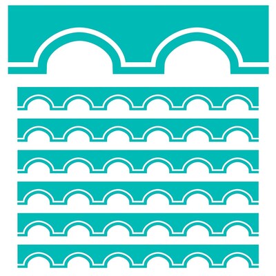Schoolgirl Style Simply Stylish Scalloped Border, 3" x 234', Turquoise and White Awning (CD-108391-6)