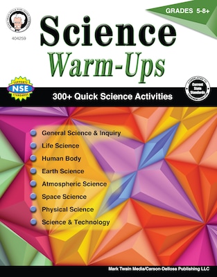 Science Warm-Ups by Mark Twain for fifth-eighth grades features over 300 warm-ups and covers the following topics:-general science-life science-the human body-space science-technologyThis middle school science workbook provides activities to get students ready for the day.