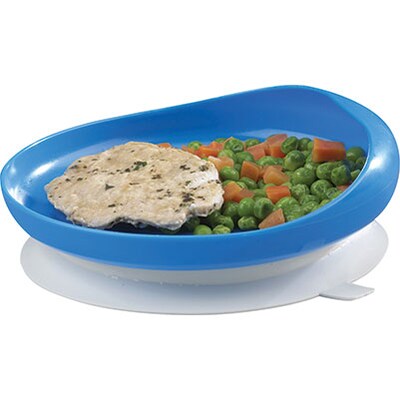 - High rim and reverse curve on one side aids in scooping food onto a utensil without spilling