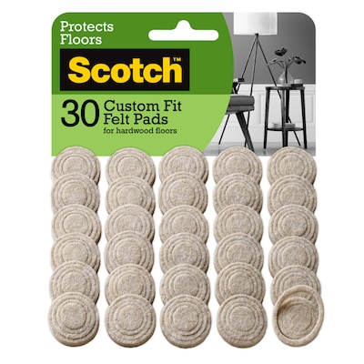 Protect the beauty of your floor with adjustable Scotch Custom Fit Felt Pads. Each customizable, durable felt pad features powerful adhesive so they stick to the bottom of furniture legs. Guard your floors against scratches and scuffs caused by sliding a chair, table, or sofa. Innovative die-cut rings make it simple to adjust each pad to the size you need for a just-right fit every time. No more guessing, hand-cutting or hassles! Available in 2 neutral colors to suit your home decor, these handy furniture accessories fit the job.