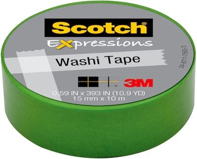 Scotch® Expressions Washi Tape, 0.59" x 10.91 yds., Green (C314-GRN)