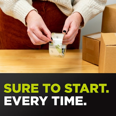 When you’re in the middle of packing boxes, the last thing you want to do is search endlessly for the end of the tape. The search is over with Scotch Sure Start Shipping Packaging Tape. This tough, strong tape comes off the roll easily and smoothly with no slivering or splitting. This tape also delivers a smooth and quiet unwind, and when it quietly unwinds off the roll and onto your package, it stays on-keeping your package securely sealed. Clear to the core, Scotch Sure Start Packaging Tape works beautifully for home and office. It stands up to rough handling-but so easy to handle. Scotch Sure Start Shipping Packaging Tape-always easy, always ready to help you get the job done.