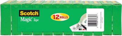 Scotch Magic Invisible Clear Tape, 0.75" x 27.77 yds., 1" Core, Clear, 12 Rolls/Pack, 12 Packs/Carton (810K12CASE)