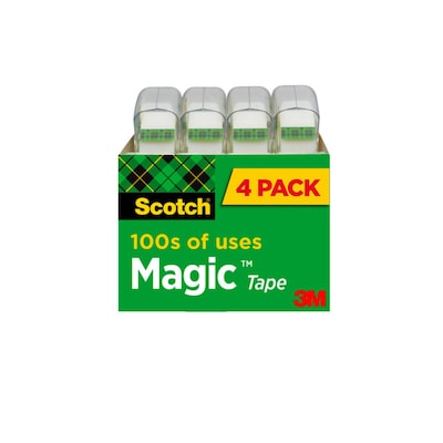 Scotch Magic Invisible Clear Tape With Dispenser, 0.75" x 8.33 yds., 1" Core, Transparent, 4 Rolls/Pack (SCOTCH4105)