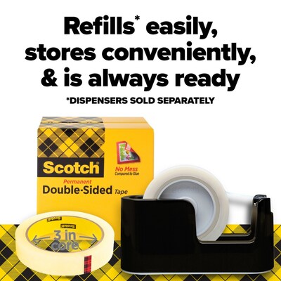 Scotch Permanent Double Sided Tape Refill, 3/4" x 36 yds., Clear, 2/Pack (665-2P34-36)