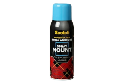 Spray Mount Adhesive is a repositionable spray adhesive, excellent for layouts, posters, presentations, graphic designs, and more. Bonds most acetate, foils, fabrics, light tissues, and newsprint. Convenient and versatile. Light spray allows repositioning, while a heavier spray allows a stronger bond. Quick tack, non wrinkling, and resists bleed through.