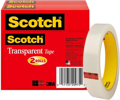 Scotch Transparent Clear Tape Refill, 0.75" x 72 yds., 3" Core, Clear, 2 Rolls/Pack (600-2P34-72)