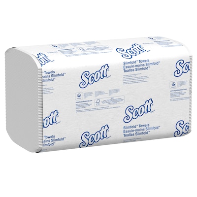 Wipe up messes or dry hands with these paper towels. The five-fold design conserves space on counters and tables and provides easy dispensing, while the built-in absorbency pockets soak up moisture to leave surfaces clean and dry. These paper towels are packaged in 90-sheet bundles, allowing for easy distribution throughout your building. With a crisp, white color, these Scott Control Plus+ Slimfold paper towels offer a clean look for use in offices, schools, and medical facilities.