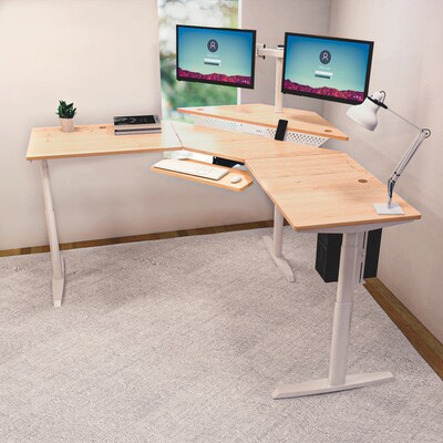 VersaDesk PowerLift 60"W Electric L-Shaped Adjustable Standing Desk, Cherry/White (PLLSD6060-WC-APP)