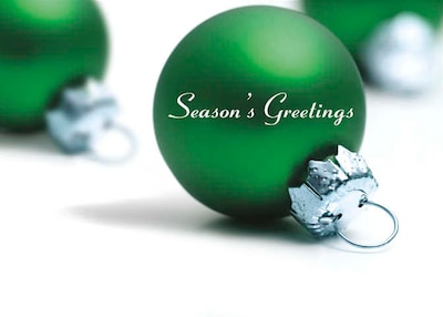 Seasons Greetings Green Ornament Holiday Greeting Cards, With A7 Envelopes, 7" x 5", 25 Cards per Set