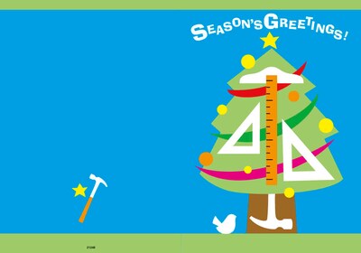 Seasons Greetings - hammer, triangle - 7 x 10 scored for folding to 7 x 5, 25 cards w/A7 envelopes per set
