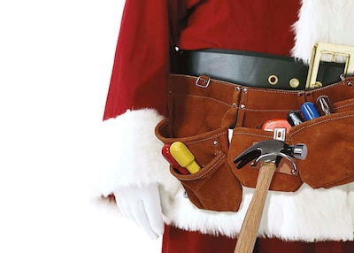 Seasons Greetings Tool Belt On Santa Holiday Greeting Cards, With A7 Envelopes, 7" x 5", 25 Cards per Set