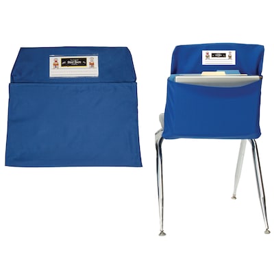 Seat Sack 14" Standard seat sack with new name card holder in blue color is designed to slide onto the back of a chair to provide instant storage of books, papers, school supplies.