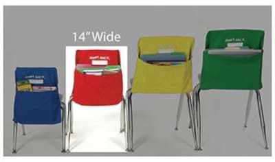 Red colored 14" standard seat pocket and sack helps to manage classroom materials in their own seat storage pocket.