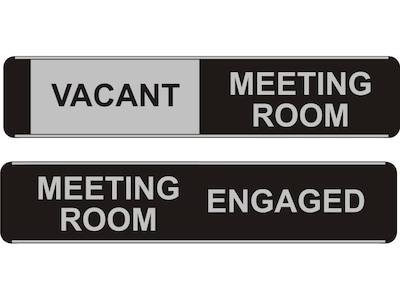 Seco Adhesive Meeting Room Vacant/Engaged Sliding Indoor Sign, 10" x 2", Black/Gray (BA101)