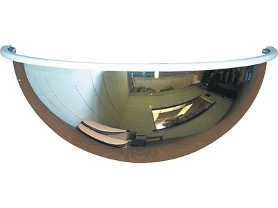 Increase visibility on sales floors or along hallways with this See All convex safety and security mirror. The half-dome design sits flush against the wall and ceiling for a 180° viewing angle, and the smooth mirrored finish reflects activity in your building for increased security. This mirror provides a view of up to 200 square feet, making it ideal for use in school, nursing home and hospital halls or in small boutiques and cafes.