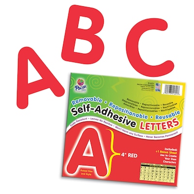 Self-Adhesive Letters, 4", 78 Characters, Red