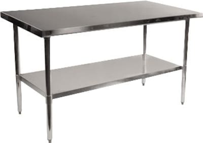 18 gauge silver stainless steel top with 1 5/8" galvanized steel legs.