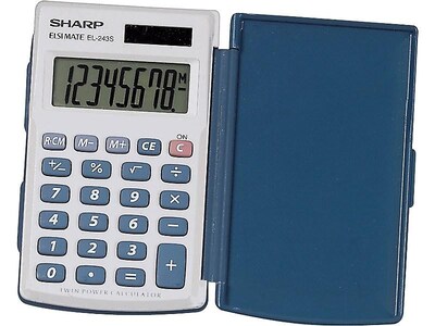 Sharp Elsi Mate EL-243SB 8-Digit Pocket Calculator, Gray/Blue