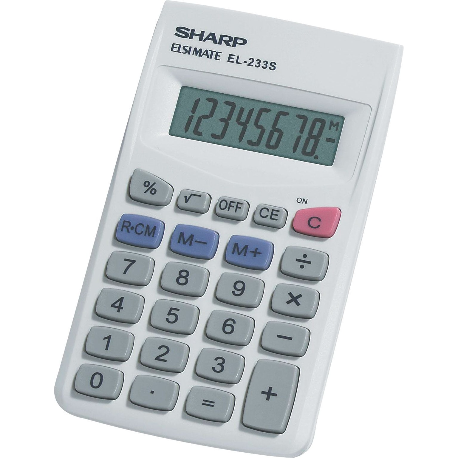 Sharp Elsi Mate 8-Digit Basic Calculator, White (EL233SB)