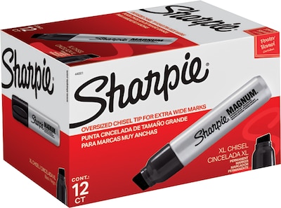 Create notes that last with the fade-resistant, water-resistant ink in these permanent markers. The chisel tips are extra wide, so you can easily make bold, highly-visible lines, and the aluminum barrels stand up to rough handling. These Sharpie Magnum black permanent markers come in a box of 12, making it simple to supply them to multiple workers at once.