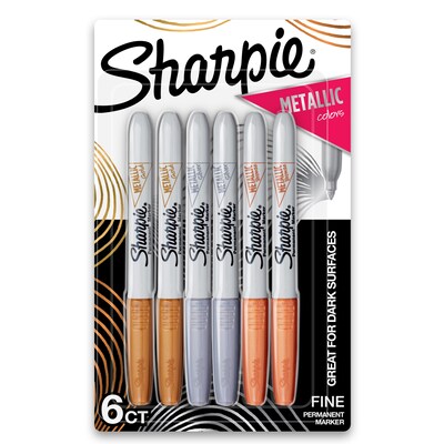 Sharpie Permanent Markers, Fine Tip, Assorted Metallic, 6/Pack (1829201)