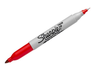 Add bold red color with this Sharpie 2-in-1 twin-tip permanent marker. The fine point on one end and ultra-fine point on the other make it easy to switch back and forth to whatever suits your needs, while the quick-drying red ink is long-lasting and can be used on most surfaces. This Sharpie twin-tip marker is a flexible option that meets all your home and business needs.