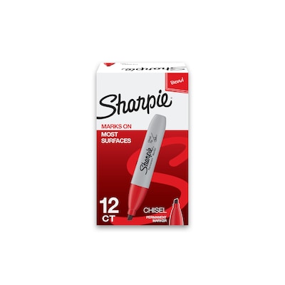 Sharpie Permanent Markers, Chisel Tip, Red, 12/Pack (38202)