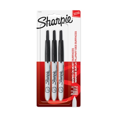Sharpie Retractable Permanent Markers, Ultra Fine Tip, Black, 3/Pack (1735793)
