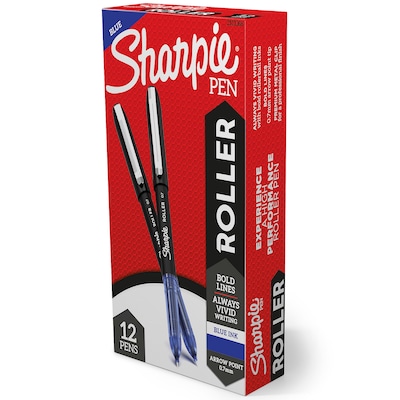 Sharpie Rollerball Pen, Arrow Point Pen for Bold Lines, Blue Ink, Dozen (2101306)