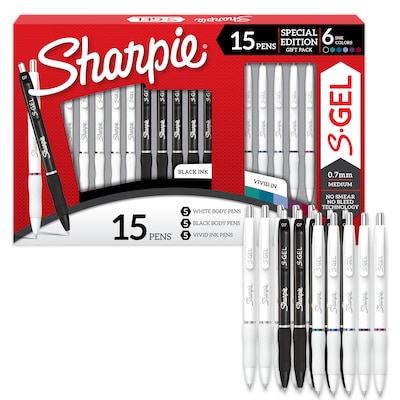 Sharpie S-Gel Pens, Special Edition Gift Pack, Classic Black and Pearl White Pens, Assorted Ink Colors, Medium Point (0.7mm), 15 Count