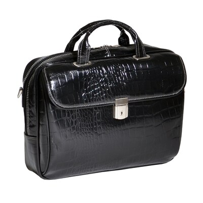 Siamod MONTEROSSO, SETTEMBRE, Embossed Crocco Leather, Medium Ladies Laptop Briefcase, Black (35525)