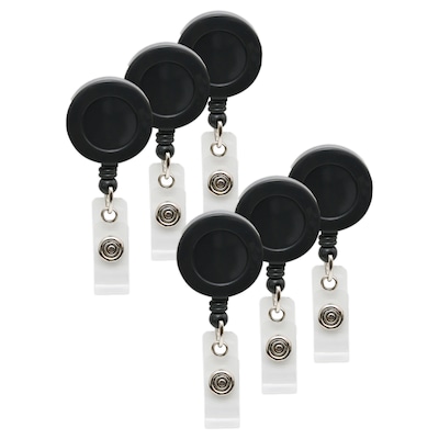 SICURIX Standard Round ID Badge Reel with Belt Clip, Black, Pack of 6 (BAU68824-6)