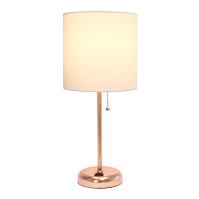 Simple Designs 19.5" Rose Gold Stick Lamp with Charging Outlet and White Fabric Shade, Bedroom, Dorm, Kids Room, Color Changing Led Bulb Included