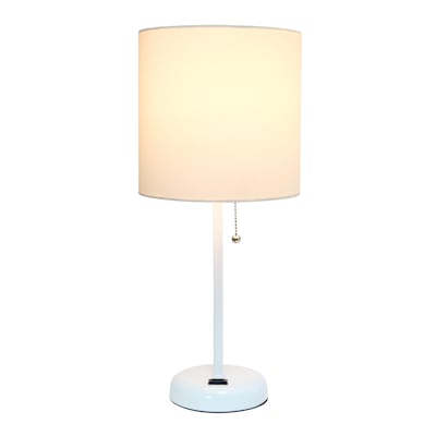 Simple Designs 19.5" White Stick Lamp with Charging Outlet and White Fabric Shade, Bedroom, Dorm, Kids Room, Color Changing Led Bulb Included