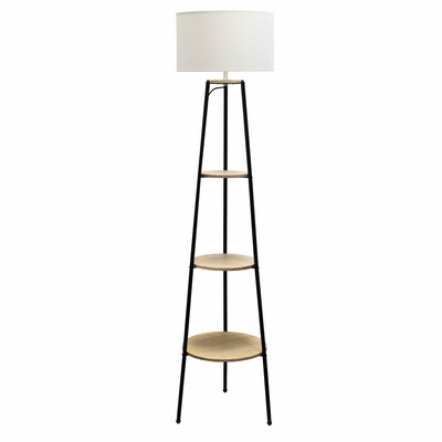 This tripod style floor lamp is an excellent upgrade to your basic floor lamp. Designed with practicality in mind, three tiered shelves sit between your base poles providing space to display photos, novelties, books, etc. This is the perfect lamp to provide both ample lighting and space organization to both large and small areas of your home, dorm, or office!