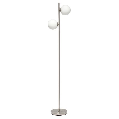 Simple Designs 66" Tall Mid Century Modern Standing Tree Floor Lamp w/ Dual White Glass Globe Shade, Brushed Nickel (LF1044-BSN)