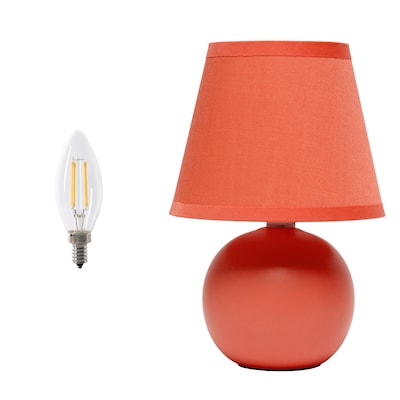 Simple Designs 8.66" Compact Ceramic Globe Table Lamp with Stylish Shade, LED Bulb Included, Orange