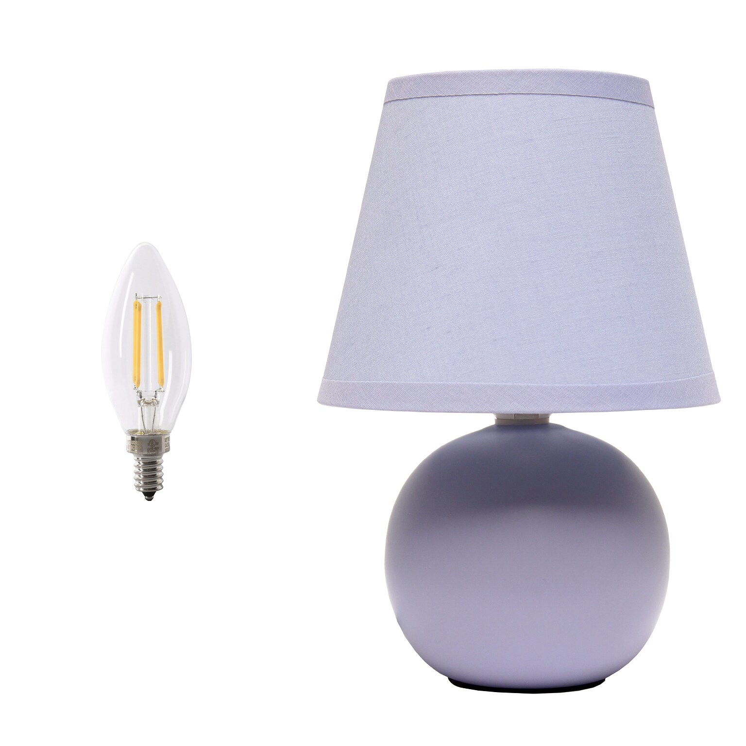 Simple Designs 8.66" Compact Ceramic Globe Table Lamp with Stylish Shade, LED Bulb Included, Purple